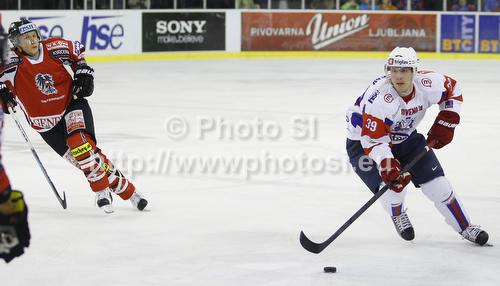 : Jan Mursak (no.39) of Slovenia during match of EIHC Ice hockey tournament between Slovenia and Austria. Match between Slovenia and Austria was held in Ljubljana Hala Tivoli arena, Slovenia, on Saturday, 10th of November 2012.