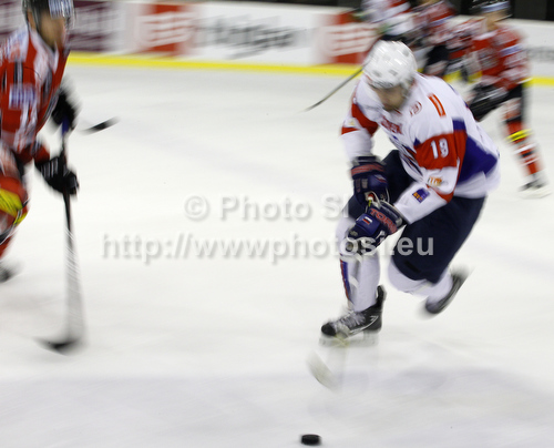 : Ziga Pance (no.19) of Slovenia during match of EIHC Ice hockey tournament between Slovenia and Austria. Match between Slovenia and Austria was held in Ljubljana Hala Tivoli arena, Slovenia, on Saturday, 10th of November 2012.