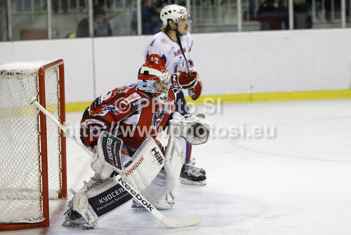 : Goalie Bernhard Starkbaum (no.29) of Austria in action during match of EIHC Ice hockey tournament between Slovenia and Austria. Match between Slovenia and Austria was held in Ljubljana Hala Tivoli arena, Slovenia, on Saturday, 10th of November 2012.