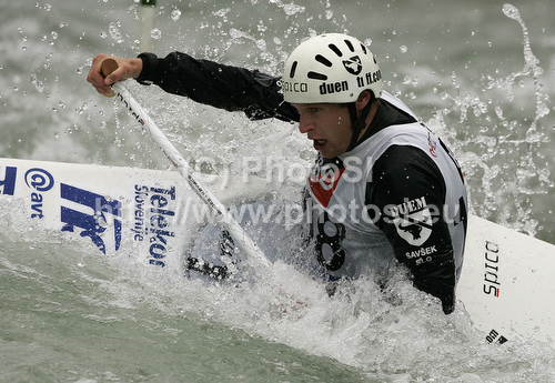 : Benjamin Savsek of Slovenia during International ICF slalom Tacen 2010 white water kayaking race. International ICF slalom Tacen 2010 white water kayak race was held on Saturday, 15th of May 2010 in Tacen, Slovenia.