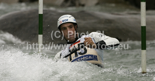 Tacen ,Slovenia - 15.05.2010 : Tony Estanguet of France during International ICF slalom Tacen 2010 white water kayaking race. International ICF slalom Tacen 2010 white water kayak race was held on Saturday, 15th of May 2010 in Tacen, Slovenia. Photo by: Tomaz Jeroncic