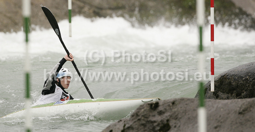 : Anja Kancler of Slovenia during International ICF slalom Tacen 2010 white water kayaking race. International ICF slalom Tacen 2010 white water kayak race was held on Saturday, 15th of May 2010 in Tacen, Slovenia.