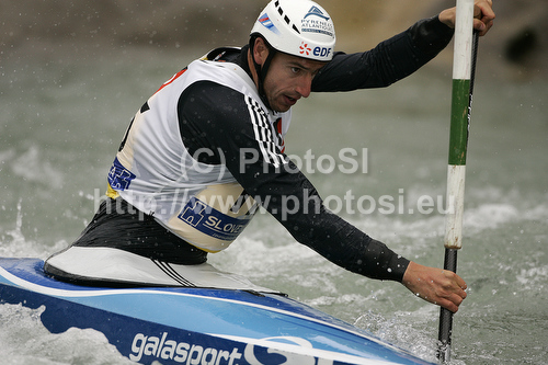 Tacen ,Slovenia - 15.05.2010 : Tony Estanguet of France during International ICF slalom Tacen 2010 white water kayaking race. International ICF slalom Tacen 2010 white water kayak race was held on Saturday, 15th of May 2010 in Tacen, Slovenia. Photo by: Tomaz Jeroncic