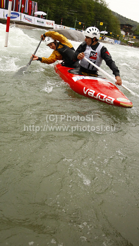 Tacen ,Slovenia - 15.05.2010 : Daniele Negro and Giordano Fiumara of Italy during International ICF slalom Tacen 2010 white water kayaking race. International ICF slalom Tacen 2010 white water kayak race was held on Saturday, 15th of May 2010 in Tacen, Slovenia. Photo by: Primoz Jeroncic