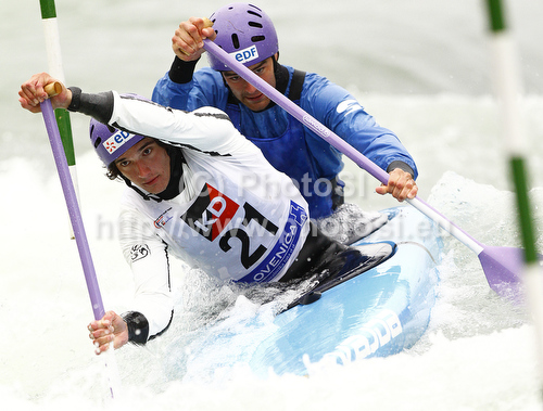 : Pierre Picco and Hugo Biso of France during International ICF slalom Tacen 2010 white water kayaking race. International ICF slalom Tacen 2010 white water kayak race was held on Saturday, 15th of May 2010 in Tacen, Slovenia.