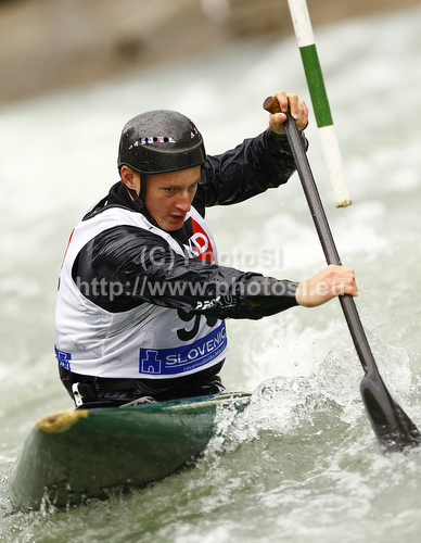 : Greg Pitt of Great Britain during International ICF slalom Tacen 2010 white water kayaking race. International ICF slalom Tacen 2010 white water kayak race was held on Saturday, 15th of May 2010 in Tacen, Slovenia.
