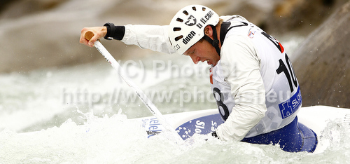 : Benjamin Savsek of Slovenia during International ICF slalom Tacen 2010 white water kayaking race. International ICF slalom Tacen 2010 white water kayak race was held on Saturday, 15th of May 2010 in Tacen, Slovenia.