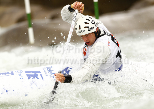 : Benjamin Savsek of Slovenia during International ICF slalom Tacen 2010 white water kayaking race. International ICF slalom Tacen 2010 white water kayak race was held on Saturday, 15th of May 2010 in Tacen, Slovenia.