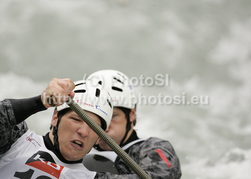 Tacen ,Slovenia - 15.05.2010 : Jure Janezic and Anze Janezic of Slovenia during International ICF slalom Tacen 2010 white water kayaking race. International ICF slalom Tacen 2010 white water kayak race was held on Saturday, 15th of May 2010 in Tacen, Slovenia. Photo by: Tomaz Jeroncic