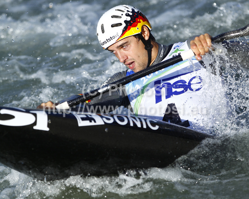 Tacen ,Slovenia - 10.09.2010 : Hannes Aigner of Germany during qualification kayak run of ICF Canoe Slalom World Championships 2010, which was held in Tacen, Slovenia, on Friday, 10th of September 2010. Photo by: Primoz Jeroncic