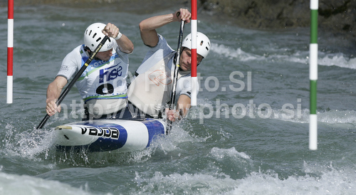: Third placed David Florence and Richard Hounsow of Great Britain during final run of men C-2 race of ICF Canoe Slalom World Championships 2010, which was held in Tacen, Slovenia, on Saturday, 11th of September 2010.