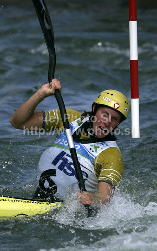 : Winner Corinna Kuhnle of Germany during final run of women K1 race of ICF Canoe Slalom World Championships 2010, which was held in Tacen, Slovenia, on Saturday, 11th of September 2010.