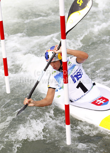 : Second placed Jana Dukatova of Slovakia during final run of women K1 race of ICF Canoe Slalom World Championships 2010, which was held in Tacen, Slovenia, on Saturday, 11th of September 2010.