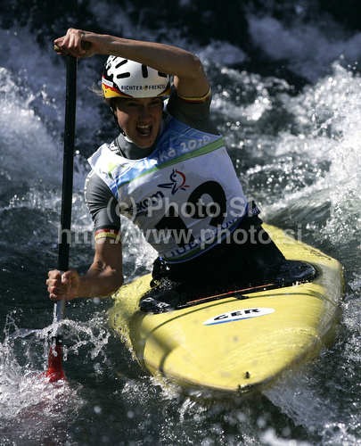 : Michaela Grimm of Germany during final run of women C-1 race of ICF Canoe Slalom World Championships 2010, which was held in Tacen, Slovenia, on Sunday, 12th of September 2010.