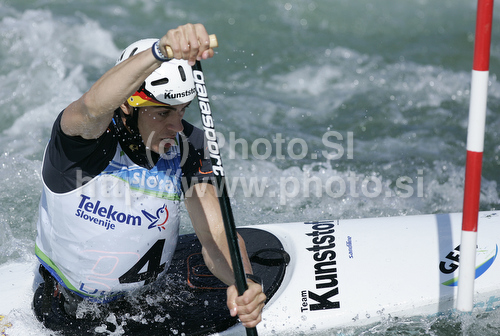 : Sideris Tasiadis of Germany during final run of men C-1 race of ICF Canoe Slalom World Championships 2010, which was held in Tacen, Slovenia, on Sunday, 12th of September 2010.