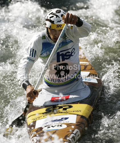 : Matej Benus of Slovakia during final run of men C-1 race of ICF Canoe Slalom World Championships 2010, which was held in Tacen, Slovenia, on Sunday, 12th of September 2010.