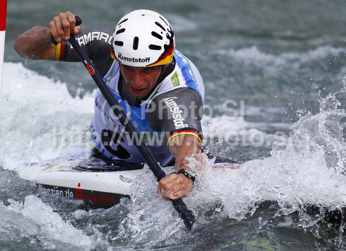 : Jan Benzien of Germany during final run of men C-1 race of ICF Canoe Slalom World Championships 2010, which was held in Tacen, Slovenia, on Sunday, 12th of September 2010.