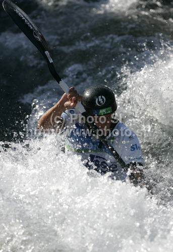 : Third placed Jure Meglic of Slovenia during final run of men K-1 race of ICF Canoe Slalom World Championships 2010, which was held in Tacen, Slovenia, on Sunday, 12th of September 2010.