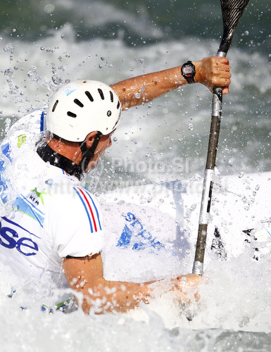 : Boris Neveu of France during final run of men K-1 race of ICF Canoe Slalom World Championships 2010, which was held in Tacen, Slovenia, on Sunday, 12th of September 2010.