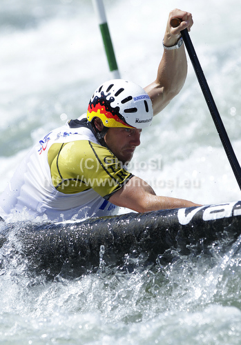 : Nico Bettge of Germany during Men C1 finals of ICF Canoe Slalom World Cup SLOKA 2011, which were held in Tacen, Slovenia, on Saturday, 25th of June 2011.