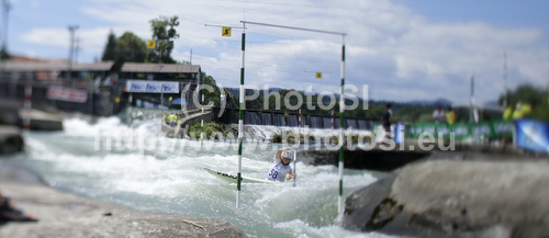 : Third placed Katarina Macova of Slovakia during Women C1 finals of ICF Canoe Slalom World Cup SLOKA 2011, which were held in Tacen, Slovenia, on Saturday, 25th of June 2011.