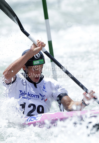 Tacen ,Slovenia - 25.06.2011 : Second placed Jure Meglic of Slovenia during Men K1 finals of ICF Canoe Slalom World Cup SLOKA 2011, which were held in Tacen, Slovenia, on Saturday, 25th of June 2011. Photo by: Primoz Jeroncic
