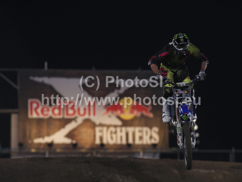 : Adam Jones (USA) in action during the London stage of The Red Bull X-Fighters freestyle Motorcycle Cross Tournament held at Battersea Power Station, Battersea, London, England.
