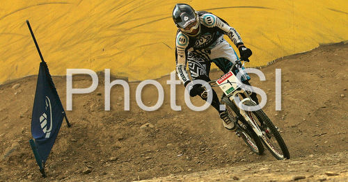 : Dan Atherton of Great Britain during 4x MTB World Cup finals in Maribor, Slovenia. First race of UCI Nissan Mountain Bike World Cup 2008 was held in Maribor, Slovenia, on 10th of May 2008.