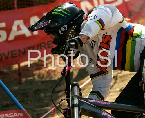 : Sabrina Jonnier of France during women semi final run of first Downhill MTB World Cup 2008. First women race of UCI Nissan Mountain Bike World Cup 2008 was held in Maribor, Slovenia, on 11th of May 2008.