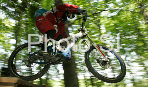 Maribor ,Slovenia - 11.05.2008 : Rider during men semi final run of first Downhill MTB World Cup 2008. First men race of UCI Nissan Mountain Bike World Cup 2008 was held in Maribor, Slovenia, on 11th of May 2008. Photo by: Primoz Jeroncic