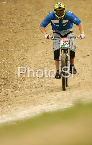 : Aki Farm of Finland during men final run of first Downhill MTB World Cup 2008. First men race of UCI Nissan Mountain Bike World Cup 2008 was held in Maribor, Slovenia, on 11th of May 2008.