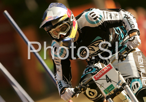 Maribor ,Slovenia - 11.05.2008 : Sixth placed Gee Atherton of Great Britain during men final run of first Downhill MTB World Cup 2008. First men race of UCI Nissan Mountain Bike World Cup 2008 was held in Maribor, Slovenia, on 11th of May 2008. Photo by: Primoz Jeroncic