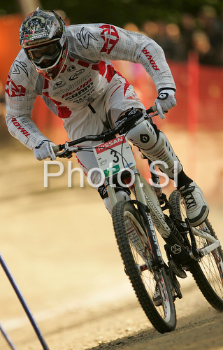Maribor ,Slovenia - 11.05.2008 : Second placed Steve Peat of Great Britain during men final run of first Downhill MTB World Cup 2008. First men race of UCI Nissan Mountain Bike World Cup 2008 was held in Maribor, Slovenia, on 11th of May 2008. Photo by: Primoz Jeroncic