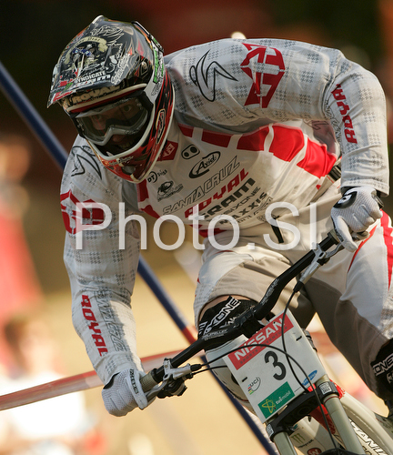 : Second placed Steve Peat of Great Britain during men final run of first Downhill MTB World Cup 2008. First men race of UCI Nissan Mountain Bike World Cup 2008 was held in Maribor, Slovenia, on 11th of May 2008.