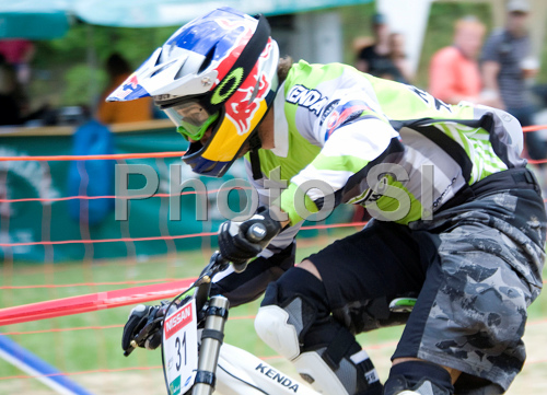 : Filip Polc of Slovakia during men final run of first Downhill MTB World Cup 2008. First men race of UCI Nissan Mountain Bike World Cup 2008 was held in Maribor, Slovenia, on 11th of May 2008.