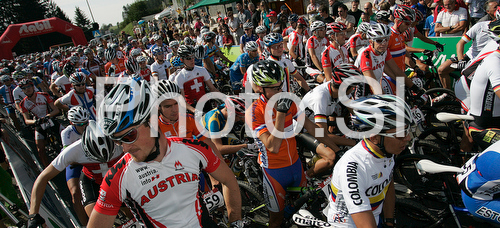 : Riders before start of men UCI Mountain bike Marathon World Championships race in Graz - Stattegg, Austria. 104km long men race was held in Graz - Stattegg, Austria, on 23rd of August 2009.