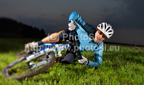Kranj ,Slovenia - 10.10.2010 : Mountain biker riding his bike through fields near his home city of Kranj, Slovenia, on late autumn afternoon of Sunday, 10th of October 2010. Photo by: Primoz Jeroncic