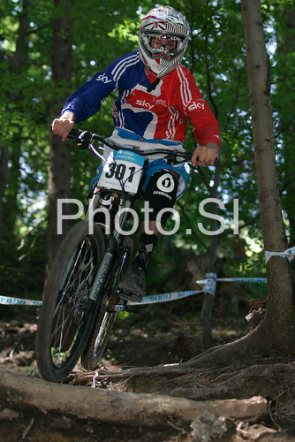 : Gareth Brewin of Great Britain riding during final run of Mountain Bike Downhill European Championships in Kranjska Gora, Slovenia. MTB Downhill European Championships was held on Sunday, 14th of June 2009 in Kranjska Gora, Slovenia.