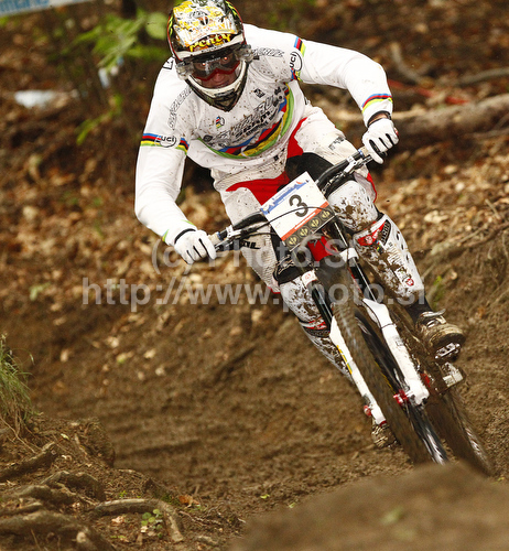 Maribor ,Slovenia - 16.05.2010 : Steve Peat of Great Britain riding during men Mountain Bike UCI World cup downhill race. Downhill race of Mountain Bike UCI World cup was held on Sunday, 16th of May 2010 in Maribor, Slovenia. Photo by: Primoz Jeroncic