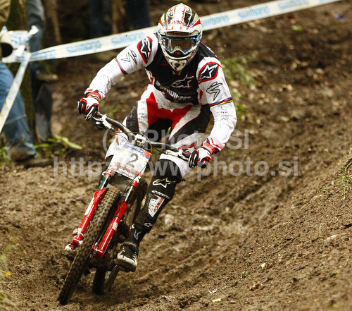 Maribor ,Slovenia - 16.05.2010 : Winner Greg Minnaar of South Africa riding during men Mountain Bike UCI World cup downhill race. Downhill race of Mountain Bike UCI World cup was held on Sunday, 16th of May 2010 in Maribor, Slovenia. Photo by: Primoz Jeroncic