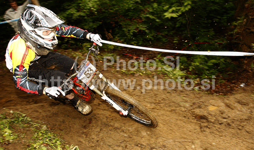 : Bernard Kerr of Great Britain riding during men Mountain Bike UCI World cup downhill race. Downhill race of Mountain Bike UCI World cup was held on Sunday, 16th of May 2010 in Maribor, Slovenia.