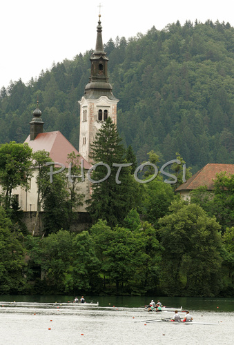 : Iztok Cop and Luka Spik of Slovenia winning double scull race of 53rd International Bled rowing regata. Bled rowing regata was held in Bled, Slovenia on 14th of June 2008.
