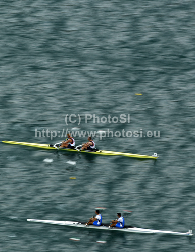 : Rowers competing during semi finals of FISA Rowing World cup in Bled, Slovenia. Semi final races of FISA Rowing World cup were held on Saturday, 29th of May 2010 in lake Bled in Bled, Slovenia.