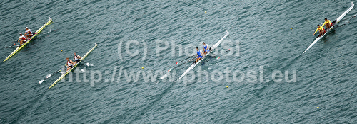 : Rowers competing during semi finals of FISA Rowing World cup in Bled, Slovenia. Semi final races of FISA Rowing World cup were held on Saturday, 29th of May 2010 in lake Bled in Bled, Slovenia.