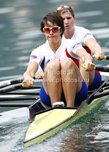 : Vanessa Grandpierre and Caroline Delas of France competing during finals of FISA Rowing World cup in Bled, Slovenia. Final races of FISA Rowing World cup were held on Sunday, 30th of May 2010 in lake Bled in Bled, Slovenia.