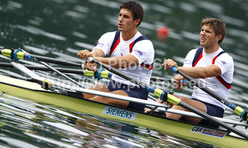: William Lucas and Sam Ownsend of Great Britain competing during finals of FISA Rowing World cup in Bled, Slovenia. Final races of FISA Rowing World cup were held on Sunday, 30th of May 2010 in lake Bled in Bled, Slovenia.