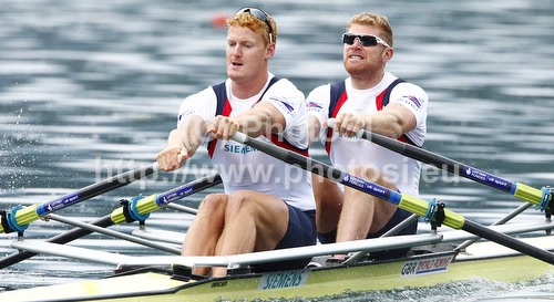 Bled ,Slovenia - 30.05.2010 : Matthew Wells and Marcus Bateman of Great Britain competing during finals of FISA Rowing World cup in Bled, Slovenia. Final races of FISA Rowing World cup were held on Sunday, 30th of May 2010 in lake Bled in Bled, Slovenia. Photo by: Primoz Jeroncic