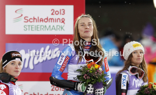: reacts in the finish of the Ladies Super G race of Fis Alpine World Ski Championships 2013 Schladming, Austria. Ladies Super G race of Fis Alpine World Ski Championships 2013 Schladming, was held on Tuesday, 5th of February, 2013, on course Streicher in Schladming , Austria.