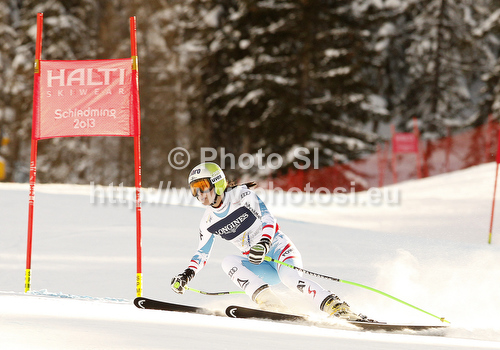 : Anna Fenninger of Austria skiing during Downhill Super combined race of Fis Alpine World Ski Championships 2013 Schladming, Austria. Downhill Super combined race of Fis Alpine World Ski Championships 2013 Schladming, was held on Friday, 8th of February, 2013, on course Streicher in Schladming, Austria.