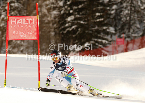 : Elisabeth Goergl of Austria skiing during Downhill Super combined race of Fis Alpine World Ski Championships 2013 Schladming, Austria. Downhill Super combined race of Fis Alpine World Ski Championships 2013 Schladming, was held on Friday, 8th of February, 2013, on course Streicher in Schladming, Austria.